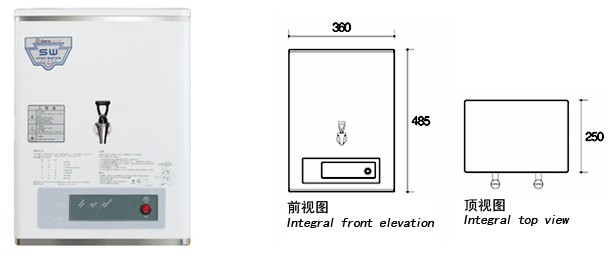 外形尺寸(长X深X高):360×250×485mm 额定功率:3KW 额定电流:13.6A 额定电压(AC):220V 推荐电源:16A插座 容 积:15L 连续供开水量(5磅暖瓶):6
